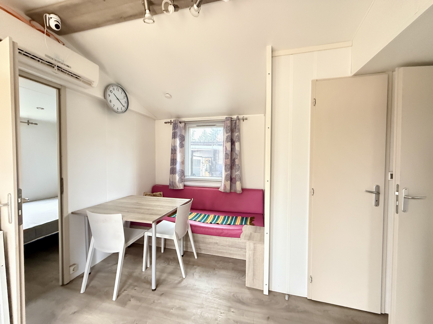 Állandó lakhatásra alkalmas könnyűszerkezetes mobilház, mely 3 külön nyíló kis szobából egy nappali konyhából, zuhanyzós fürdőszobából és egy külön illemhelyiségből áll.