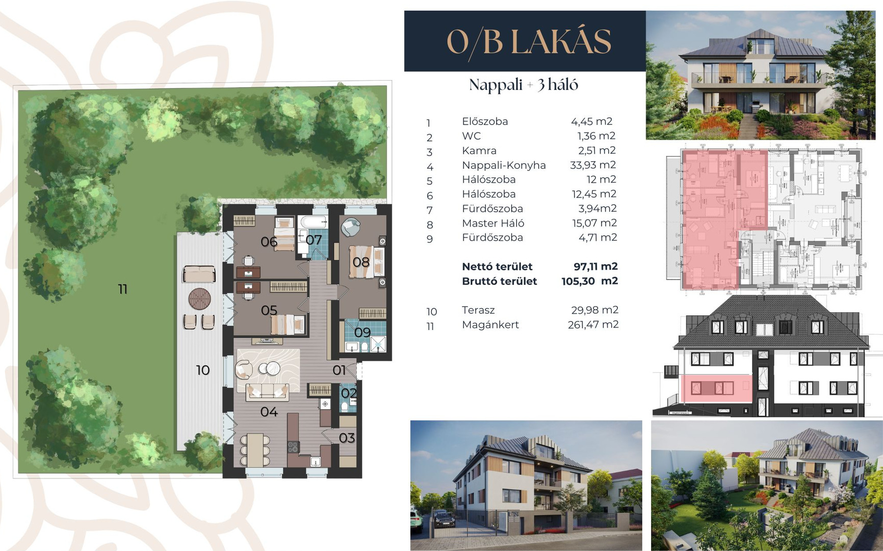 • 2–3 hálószobás lakások 78–185 m² közötti mérettel