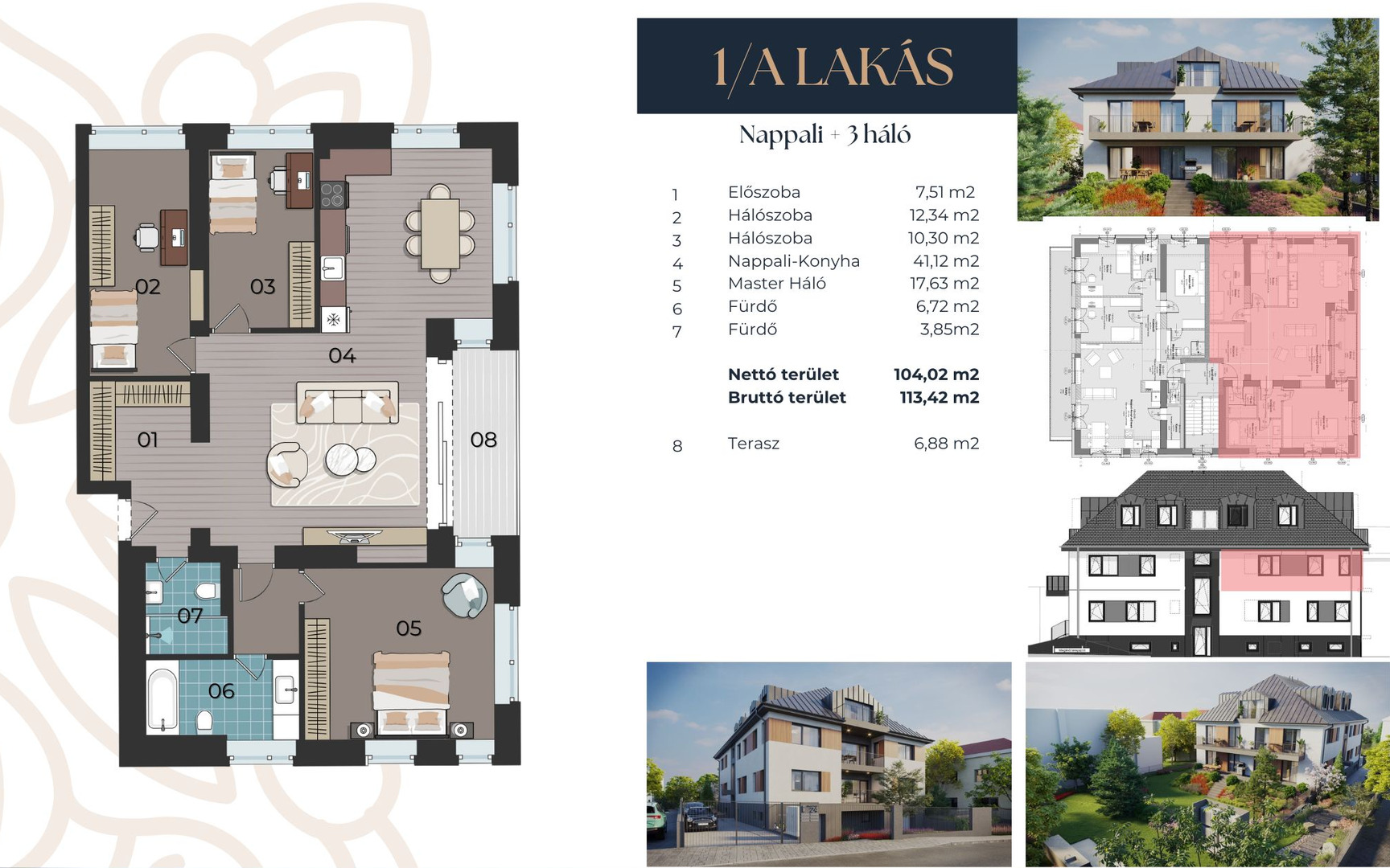 • 2–3 hálószobás lakások 78–185 m² közötti mérettel