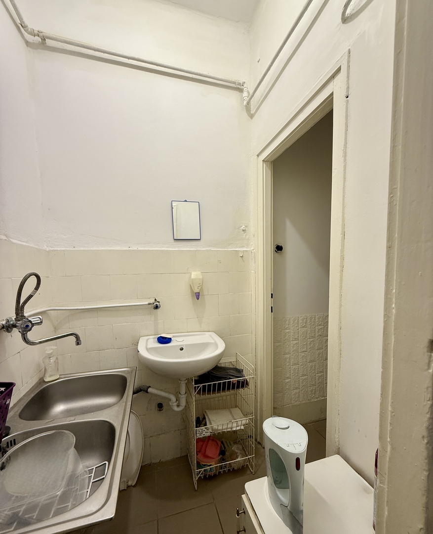 Jelenlegi elrendezését tekintve 2 nagy helyiség/eladótér/szoba és egy félszoba mely jelenleg irodaként használt. Mellékhelyiség és és pici konyha van kialakítva, de fürdőszoba jelenleg nincs külön kialakítva.